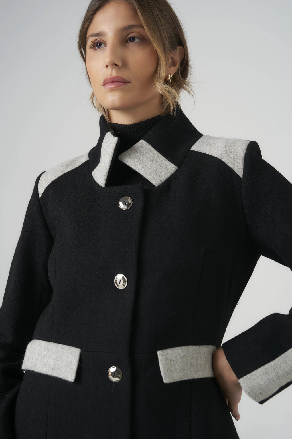 ° Detalles por demás: El diseño del cuello a la base combinado a contratono hace un juego visual diferente y tambien te permite transformarlo en cuello y solapa