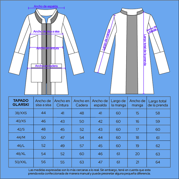 • No elijas un talle más al que te corresponde, por tener que ponerte un sweater debajo del abrigo > Esto ya está super contemplado en la holgura que se le da a la base de la moldería, cuando se la desarrolla para cualquier abrigo.